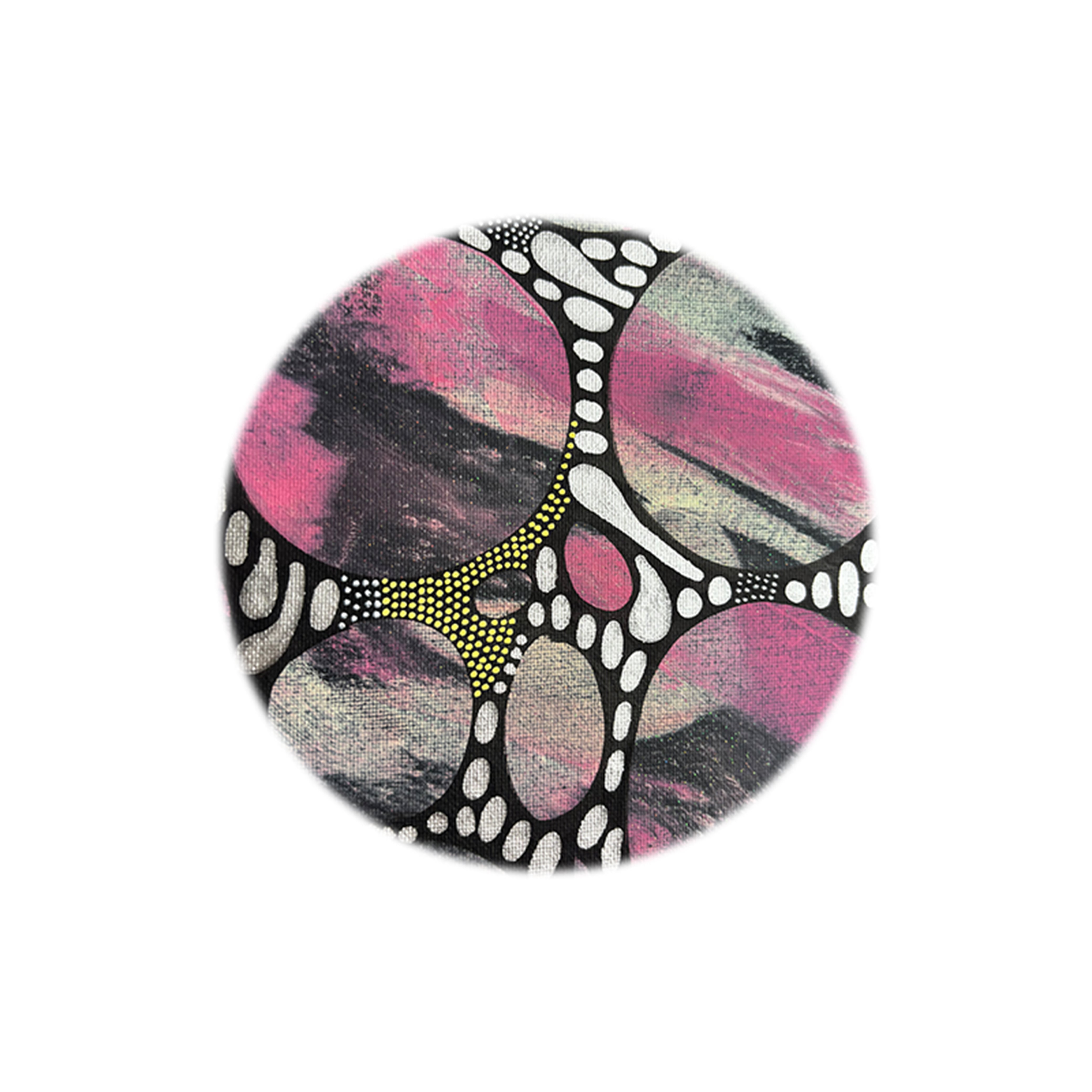 Medium: Acrylic, pen, and spray paint on canvas